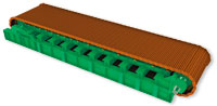 固定在鏈條上的托板為特殊截面設計的軋制型鋼,托板與托板之間搭接避免物料從托板之間漏下。托板采用防磨損的沉頭螺栓與鏈條固定。