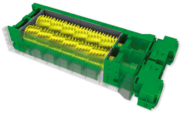 MMD625系列篩分破碎機可以根據(jù)不同的能力要求調(diào)整箱體的設(shè)計長度,同樣可以設(shè)計成可調(diào)中心距或者固定中心距。大部分破碎齒的齒形都可配置在此系列篩分破碎機上,以滿足大部分工況的需求。